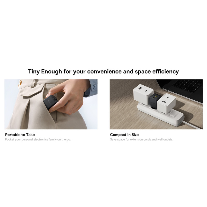 یکی از جنبه های کلیدی هر شارژر ابعاد آن است. شارژر سریع Palm Baseus با اندازه جمع و جور و مینیاتوری خود جلب توجه می کند: 31 در 31 در 54 میلی متر. به دلیل اندازه آن، واحد شارژ به راحتی در یک جیب یا کیف قرار می گیرد و آن را به یک همراه ایده آل برای سفر تبدیل می کند.