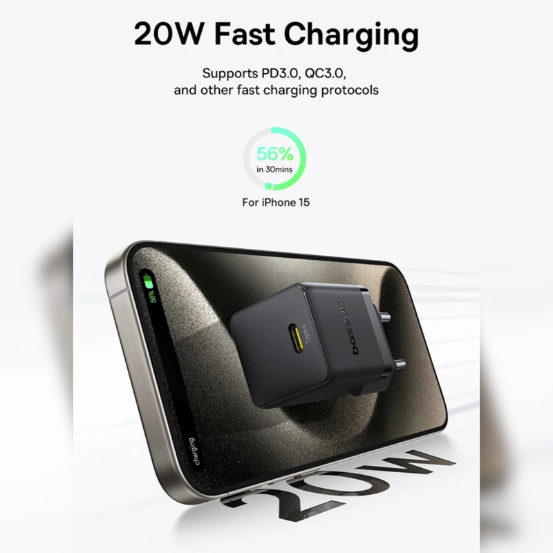 توانایی شارژر این شارژر برای شارژ آیفون 15 از 0 تا 56 درصد تنها در 30 دقیقه، نمونه درخشانی از فناوری و کارایی بالای آن است. این آن را به گزینه ای ایده آل برای کاربرانی تبدیل می کند که نیاز به شارژ سریع گوشی خود در سفر یا پس از استفاده طولانی دارند.