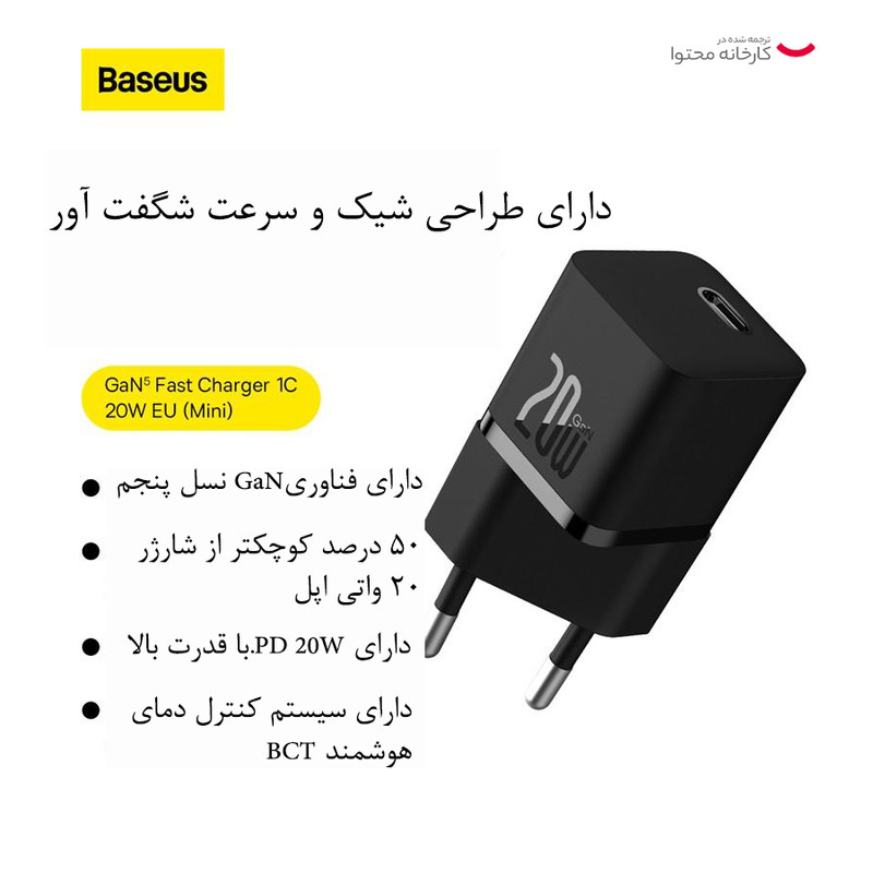 شارژر دیواری 20 وات بیسوس مدل CCGAN20E5-M