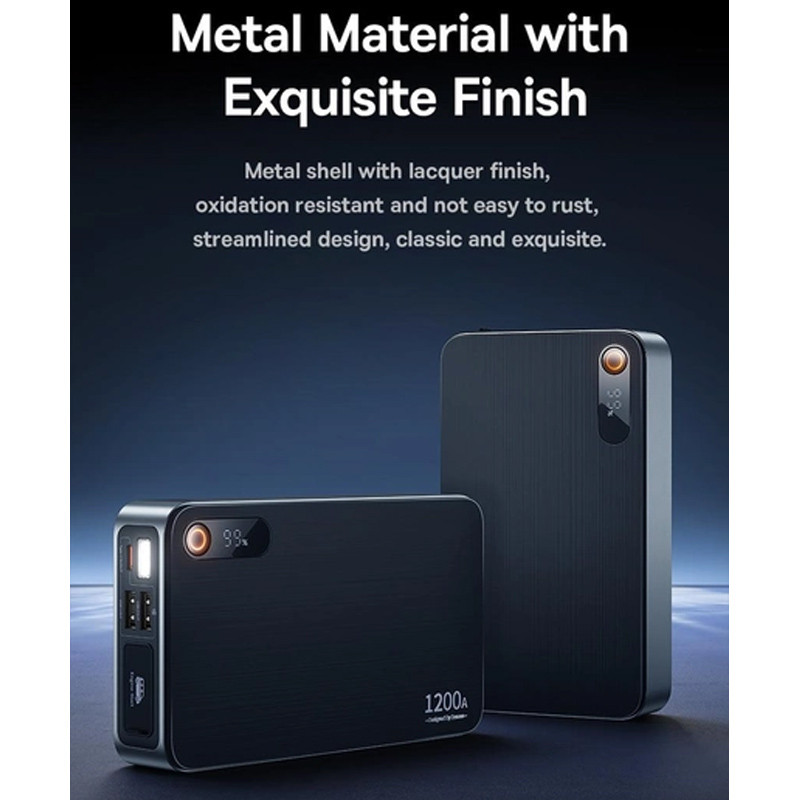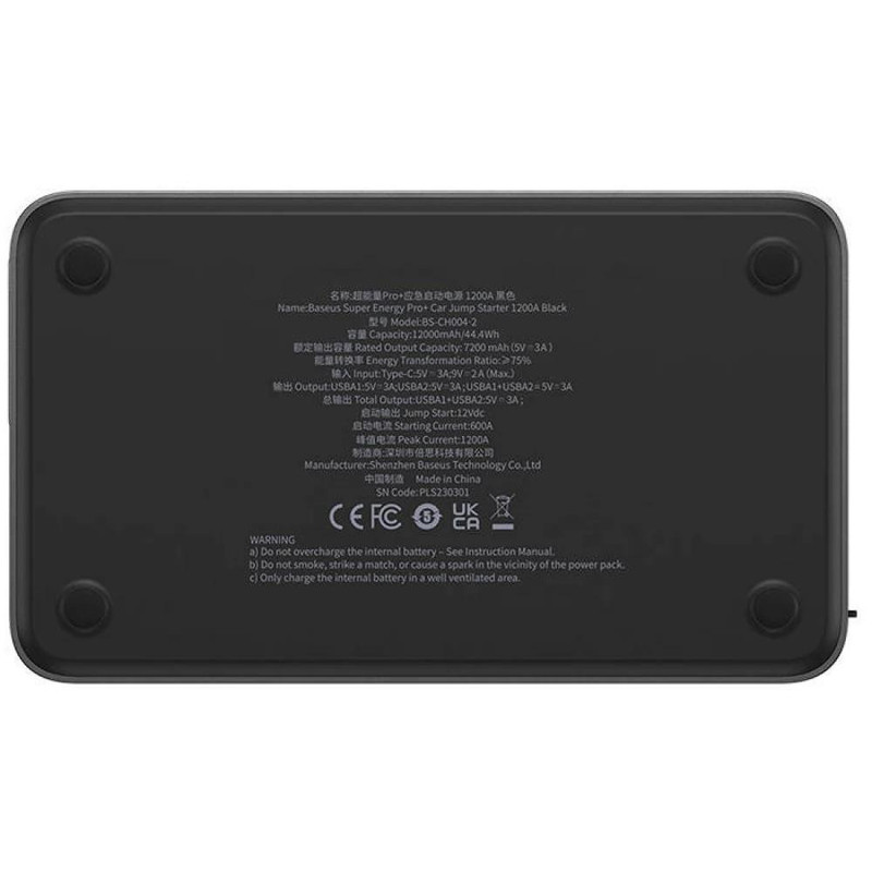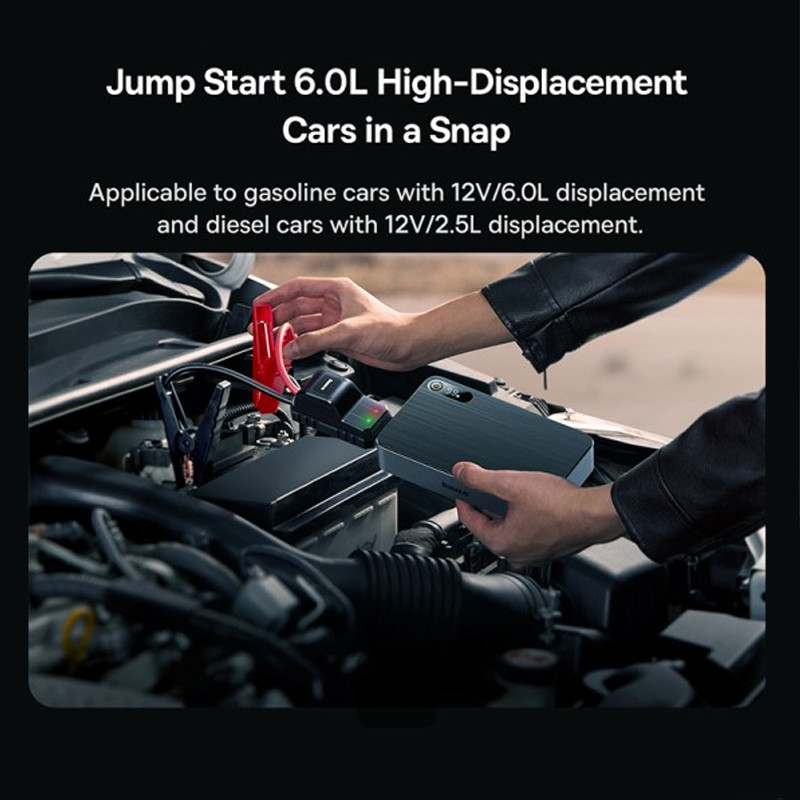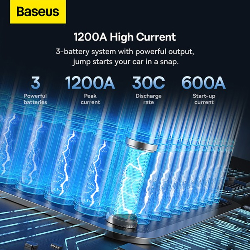 این محصول یک پاوربانک با ظرفیت 12000 میلی آمپر است و از 3 باتری پلیمری ساخته شده که می تواند جریان لحظه ای 600 تا حداکثر 1200 آمپر را تولید کند. شما می توانید جامپ استارتر بیسوس را برای خودروهای بنزینی با برق 12 ولت و حجم موتور 2.5 لیتری یا خودروهای گازوئیلی با برق 12 ولت و حجم موتور 6.0 لیتر استفاده کنید. نرخ دشارژ جامپ استارتر 30C است.