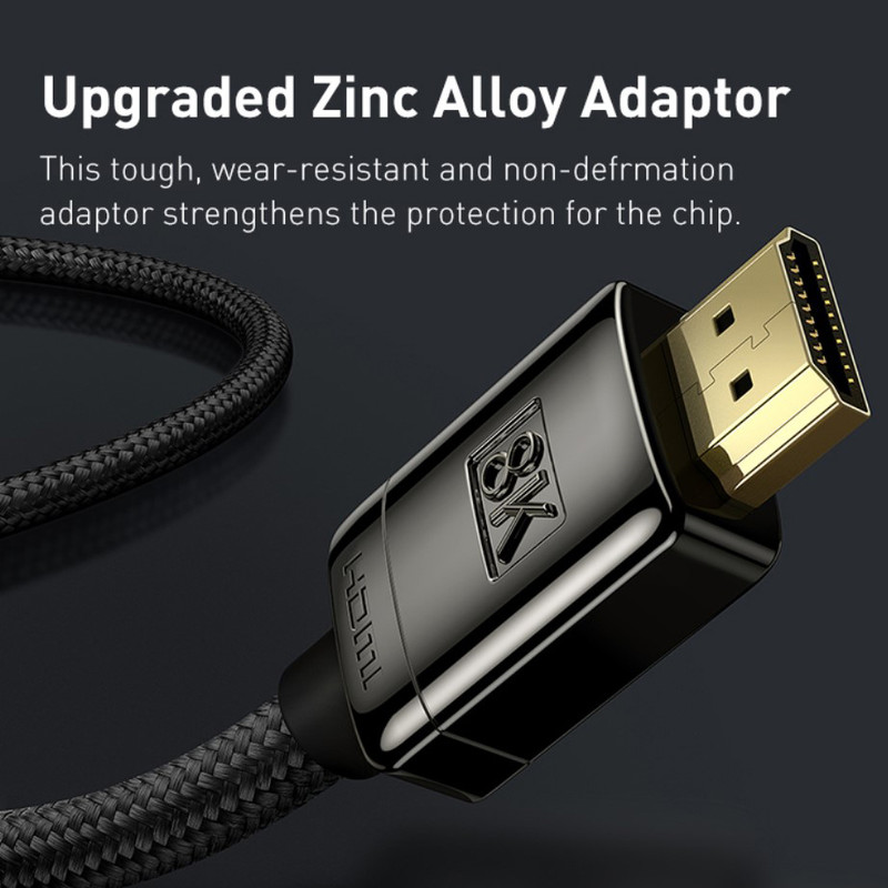 کابل اچ دی ام آی بیسوس Baseus 8K HDMI WKGQ000001 با در نظر گرفتن استانداردهای مختلف و همچنین استفاده از مواد اولیه مرغوب، به خوبی می تواند تصاویر و ویدئوها را بدون تأخیر و با کیفیت بالایی برای شما منتقل کند. به این سبب محدودیت شما در دیدن فیلمها و ویدئوهای با کیفیت در نمایشگر بزرگ رفع خواهد شد.