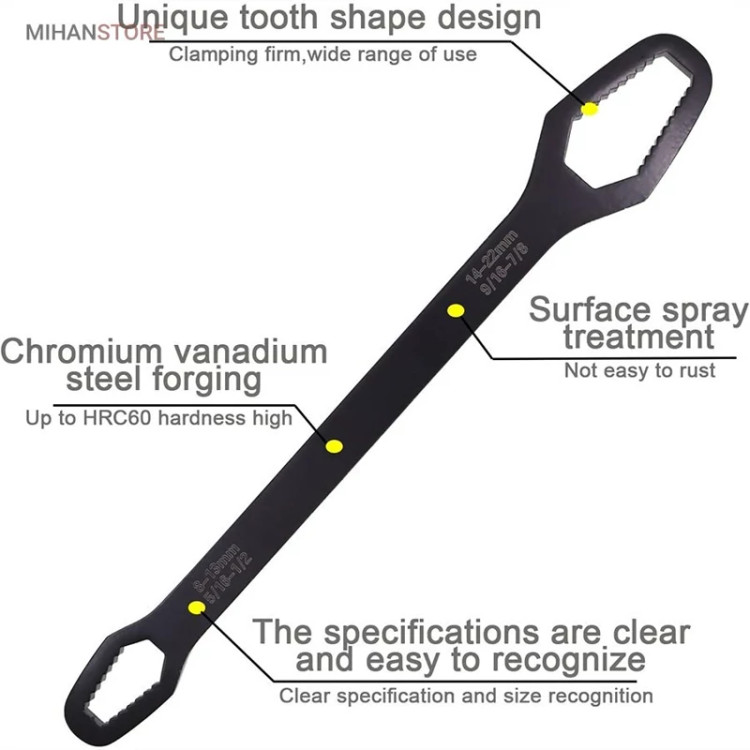 - قابل استفاده برای پیچ و مهره های سایز 8 الی 22