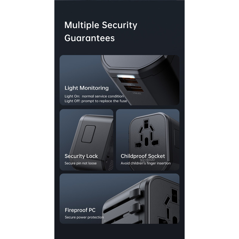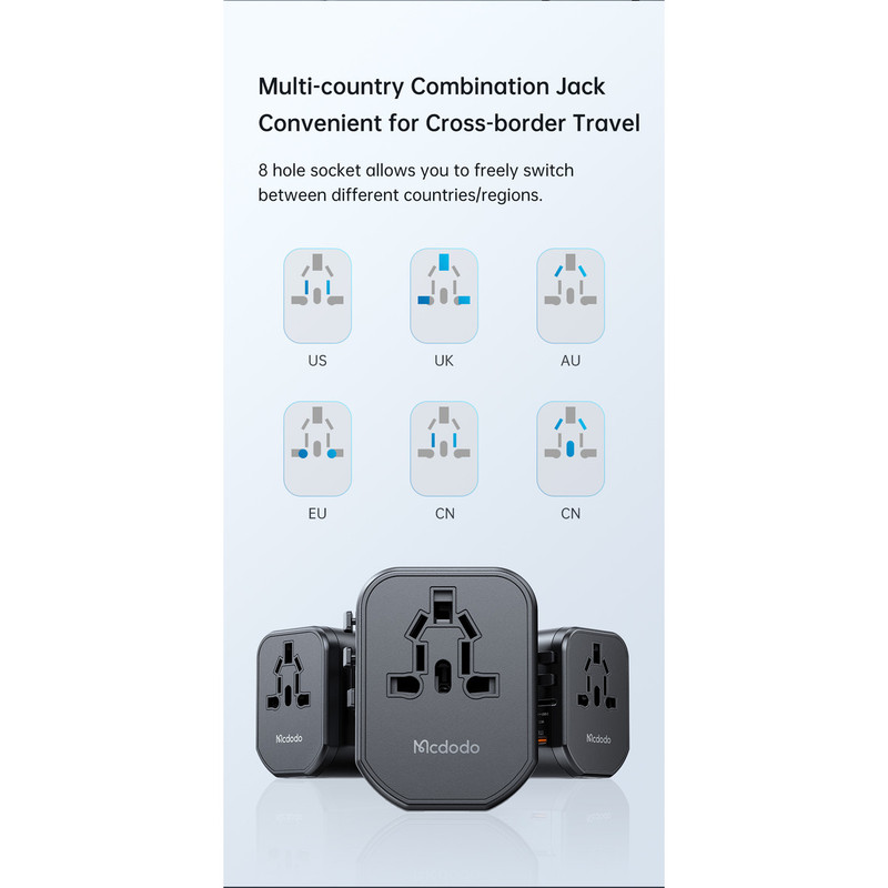 تیم تکنیک تل با افتخار در تلاش است که تجربهای متفاوت و لوکس از دنیای فناوری را به شما عزیزان هدیه دهد. کیفیت، خلاقیت و نوآوری سه رکن اصلی ما هستند، و هدف ما این است که بهترین محصولات روز دنیا را با بهترین خدمات در اختیار شما قرار دهیم تا هر لحظه از استفادهی وسایل هوشمندتان لذت ببرید. اگر به دنبال یک همراه ایدهآل برای سفرهای بینالمللی خود هستید، آداپتور مک دودو مدل CP-347 دقیقاً همان چیزی است که نیاز دارید. این آداپتور با پشتیبانی از سوکتهای EU، UK، US و AU، در بیش از 200 کشور قابل استفاده است و با خروجی 20 وات، امکان شارژ سریع را از طریق دو پورت USB و یک پورت USB-C فراهم میکند. این محصول با فناوری شارژ سریع PD و QC 3.0، به شما امکان شارژ سریع گوشیها، تبلتها و دیگر وسایل الکترونیکی را میدهد. طراحی جمعوجور و سبک آن به همراه ساختار مقاوم از مواد PC ضد حریق، امنیت و دوام را تضمین میکند. همچنین، این آداپتور به طور هوشمند از دستگاههای شما در برابر ولتاژ بالا، جریان بیش از حد و اتصال کوتاه محافظت میکند، تا در هر شرایطی خیالتان از بابت سلامت دستگاهها راحت باشد. آداپتور مک دودو با ویژگیهایی همچون سازگاری گسترده، شارژ سریع و محافظتهای ایمنی، ابزاری ضروری برای هر مسافر حرفهای است. اگر به دنبال محصولی هستید که در کنار قابلیتهای فنی پیشرفته، طراحی زیبا و کاربردی هم داشته باشد، این آداپتور گزینهای ایدهآل برای شماست.
