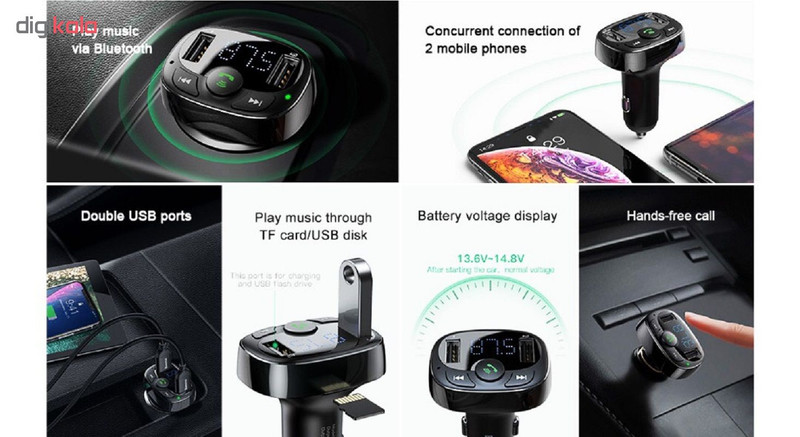 شارژر فندکی و پخش کننده بلوتوث باسئوس مدل t-type