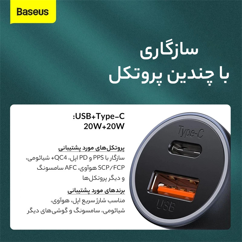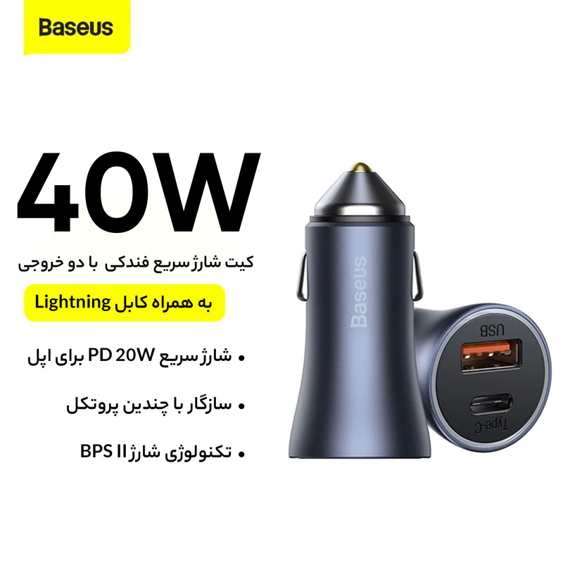 شارژر فندکی بیسوس مدل CCJD2-CX به همراه کابل لایتنینگ