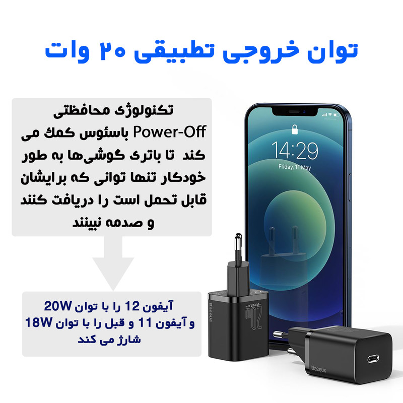 شارژر دیواری 20 وات بیسوس مدل CCCJGCE