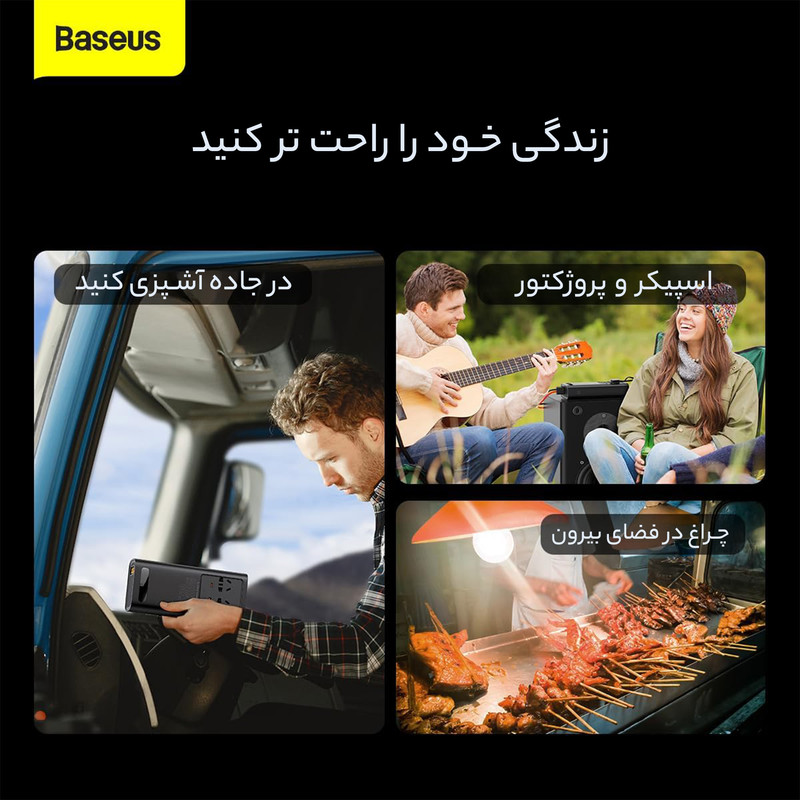 مبدل برق خودرو Baseus مدل Power Inverter 500W، یک مبدل ولتاژ است که برق مستقیم خودرو را به ولتاژ مطلوب برای راهاندازی دستگاههای برقی مانند چراغ روشنایی، لپتاپ، پنکه، دریل، پروژکتور، چایساز، آبمیوهگیری، پمپ آب، اسپیکر و ...، تبدیل کرده و با همراه داشتن آن در کمپهای تفریحی، طبیعت گردی، پیک نیک و ...، قادر خواهید بود بدون نیاز به ژنراتور برق، وسایل برقی مورد نیاز خود را به راحتی مورد استفاده قرار دهید.