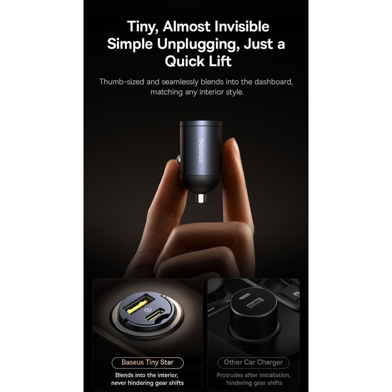 شارژر فندکی دو پورت 30 وات بیسوس Tiny Star U+C Mini VCHXX-UC یکی از محصولات باکیفیت و کارآمدبرند بیسوس است که برای کسانی که به دنبال یک شارژر فندکی سریع و قابل اعتماد برای ماشین خود هستند،گزینهای عالی به شمار میرود. این شارژر فندکی با طراحی جمعوجور، قابلیتهای ویژه و تکنولوژیهای پیشرفتهای که در اختیار کاربران قرار میدهد، تجربهای بسیار راحت و سریع از شارژ دستگاهها در حین رانندگی فراهم میکند.