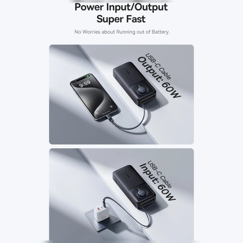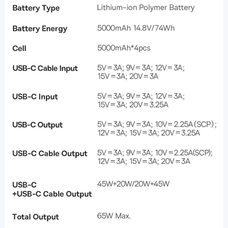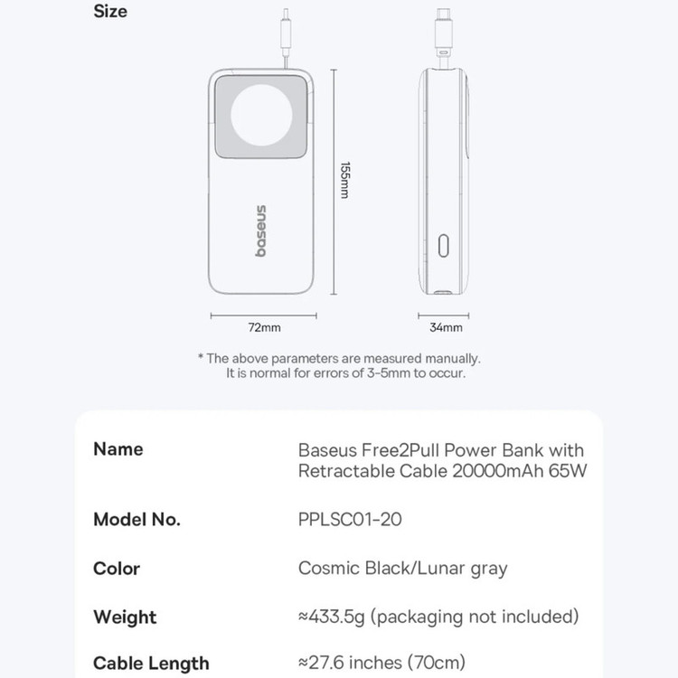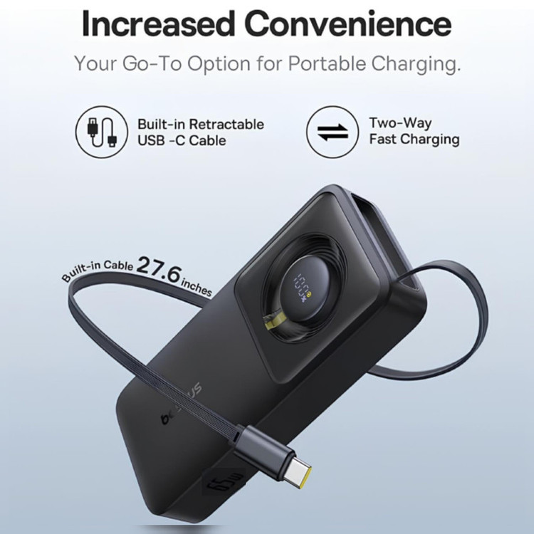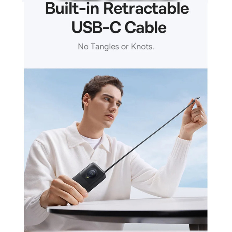 مشخصات فنی: - مجهز به انواع فناوریهای شارژ سریع - دارای2 پورت ورودی و 2 درگاه خروجی - طول کابل تایپسی 70 سانتیمتر - تحمل کابل تا 50,000 بار خمش قابلیتهای ویژه کابل تایپ سی داخلی و قابل جمعشونده