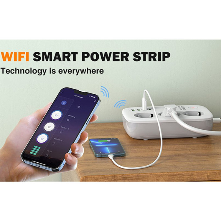 شما می توانید از طریق WIFI با موبایل خود به این مبدل وصل شده و با وارد شدن به برنامه مورد نیاز این مبدل را از راه دور کنترل کنید. برای نصب برنامه روی گوشی کافیست QR کد پشت چندراهی را اسکن کنید تا بقیه مراحل نصب نرم افزار بر روی گوشی انجام شود وبعد از آن، از کلید روی بدنه برای اتصال به گوشی همراه استفاده کنید. این محصول به واسطه ی چیپ هوشمندی که در ساخت آن استفاده شده است، در صورت تشخیص اضافه بار در مدار و یا رطوبت، جریان را قطع می کند.